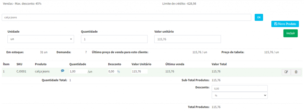 É possível adicionar algum Descontos, em real ou porcentagem- basta indicar na setinha do campo.