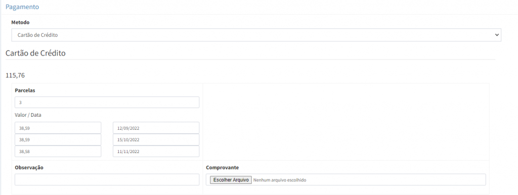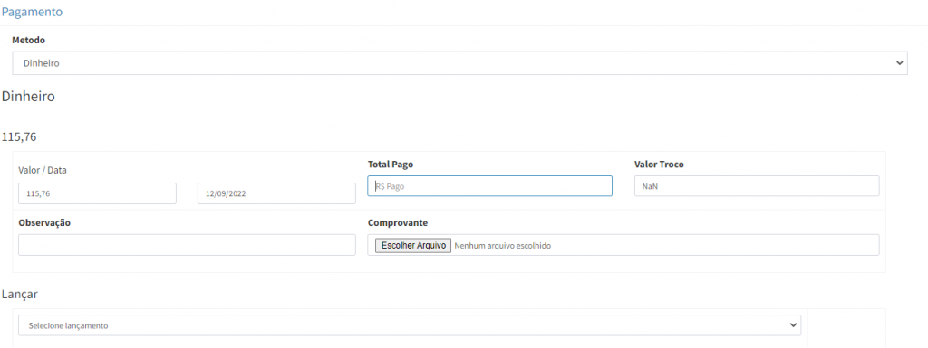 Na opção Comprovante é possível anexar um comprovante de pagamento para venda.