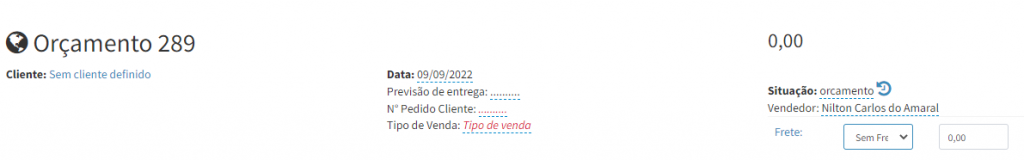 No campo cliente, clique na opção ‘Sem cliente definido’ para pesquisar um cliente.