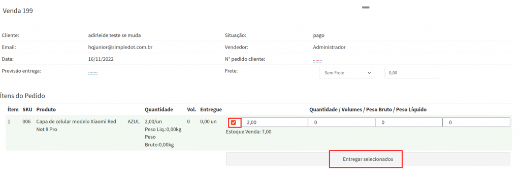 4. Você será direcionado para tela de fazer a entrega do produto, onde é possível.