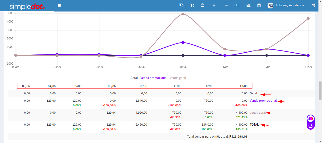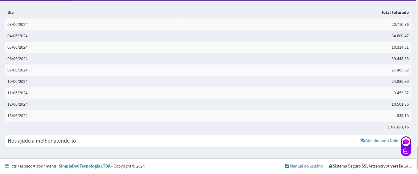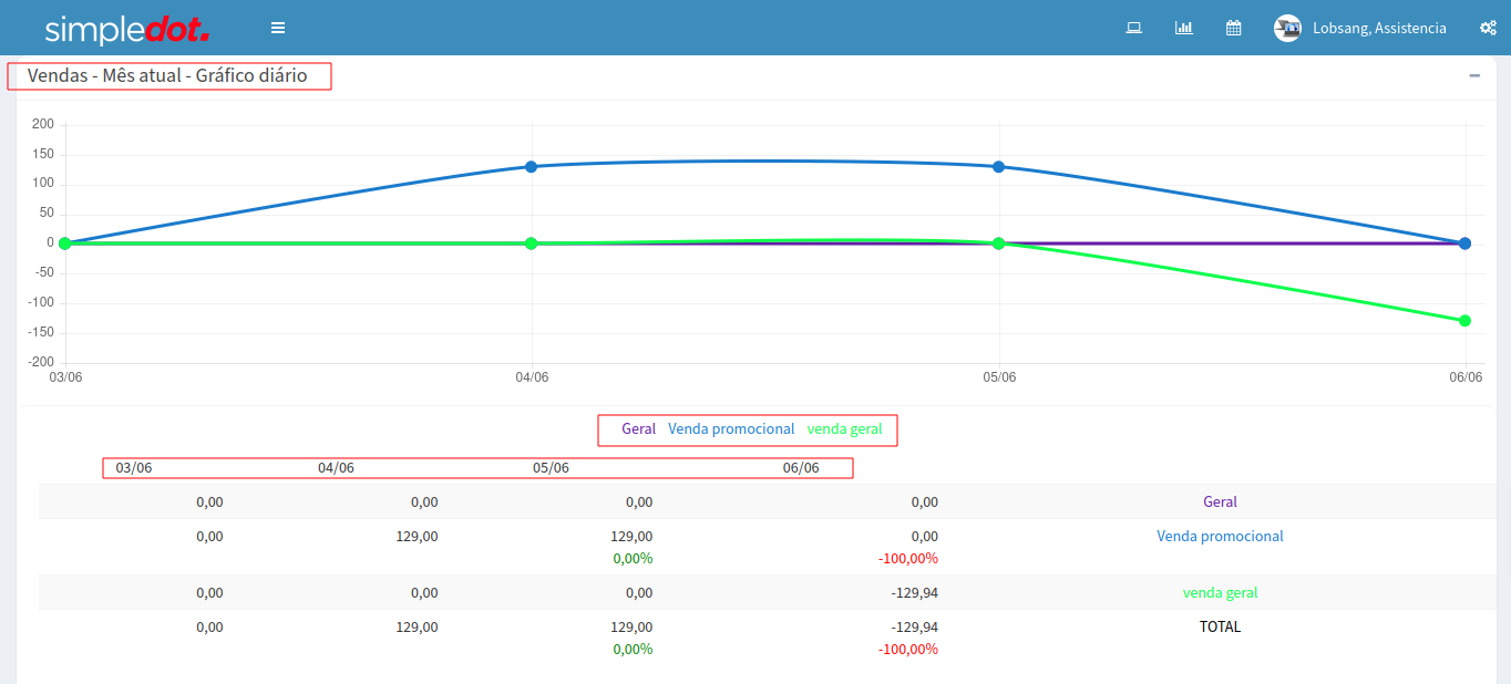 Vendas do mês atual e gráficos diários e faturamentos dessas vendas.