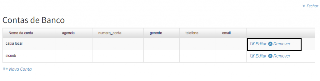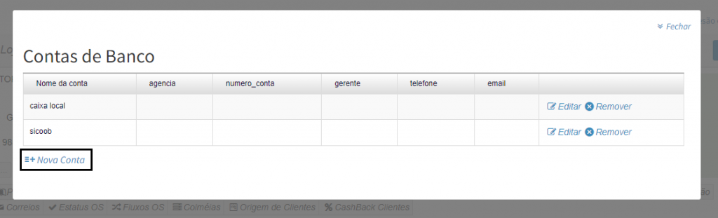 3. Na tela de ‘Contas de Banco’, clique no botão ‘Nova Conta‘.