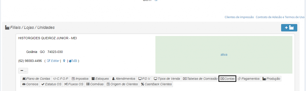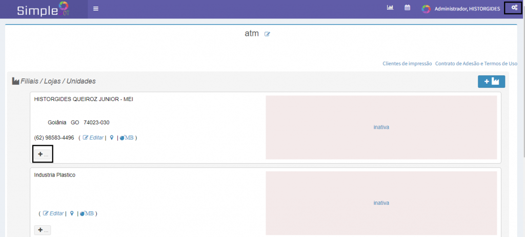 - No canto superior direito na engrenagem, em seguida clique no ícone com sinal de + para abrir o menu de configuração da empresa.