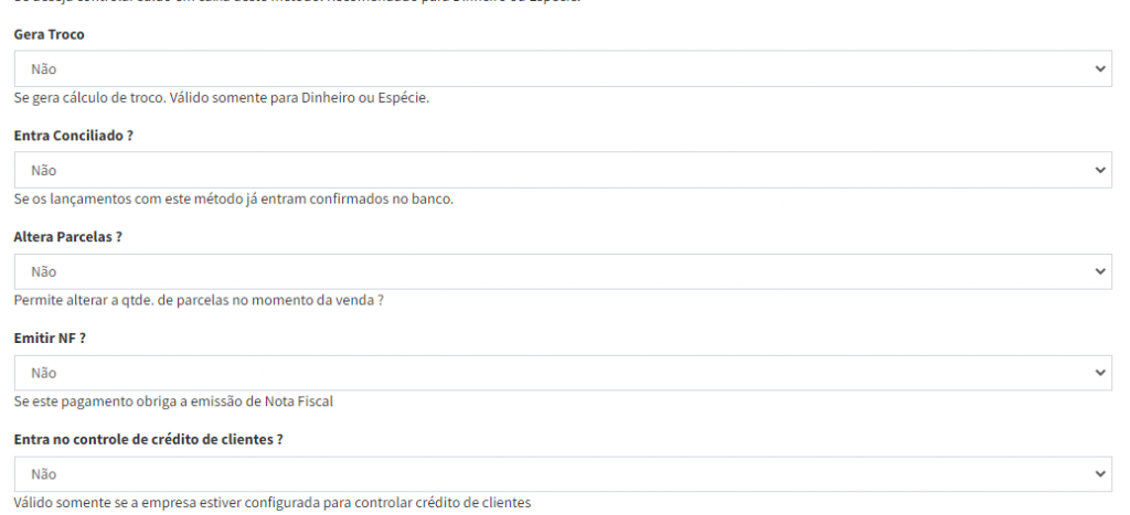 No campo ‘Entra conciliado’ informar se esta forma de pagamento já entra como confirmado no financeiro;