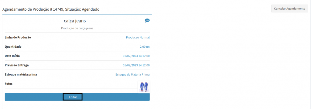 7. Você também pode Editar o agendamento da produção, caso precisa fazer alguma alteração.
