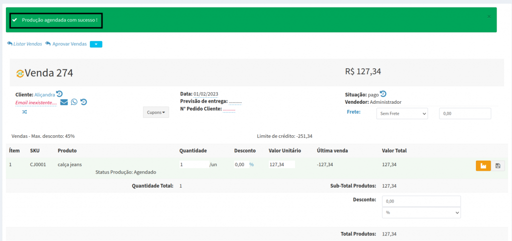 Como realizar o agendamento de produção de uma venda realizada