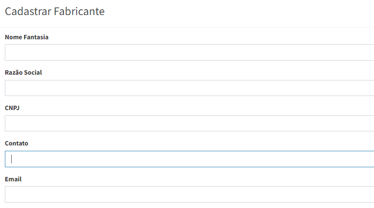- 4. Você será direcionado para a tela de ‘Cadastrar fabricante’ onde deve preencher.Dados gerais