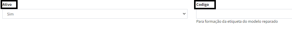 - E no campo Código, preencha o numero para formatar a etiqueta do tipo de modelo a ser reparado.