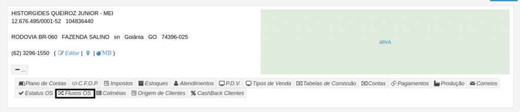 Status, informe se o fluxo da OS esta Ativo ou Inativo
