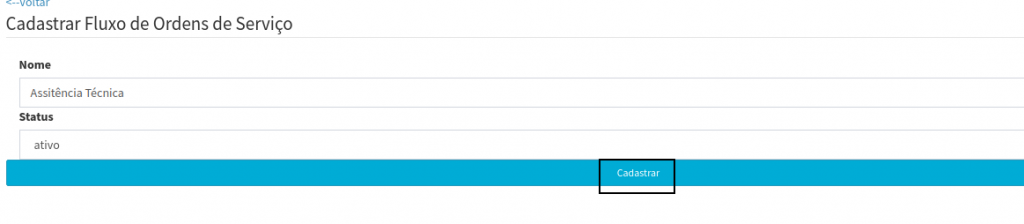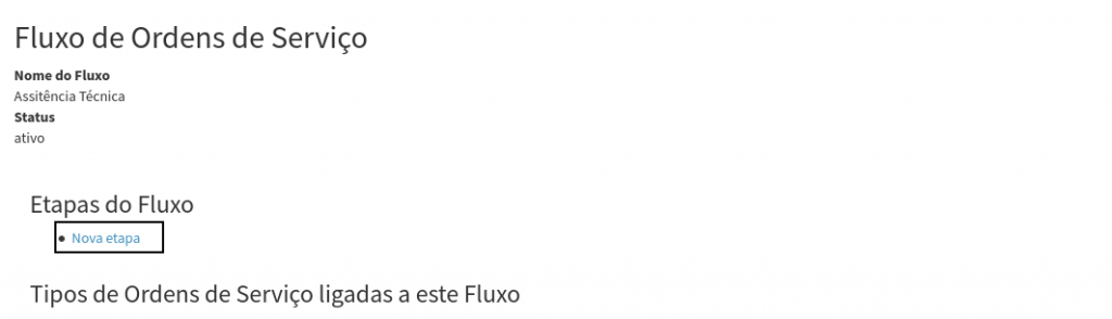 5. Após realizar o cadastro do fluxo de atendimento de ordem de serviço, será necessário cadastrar as etapas inicial e final que complementa este fluxo.