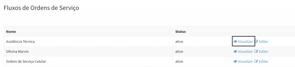 Retorne a tela de Fluxo de ordem de serviço e clique em Visualizar.