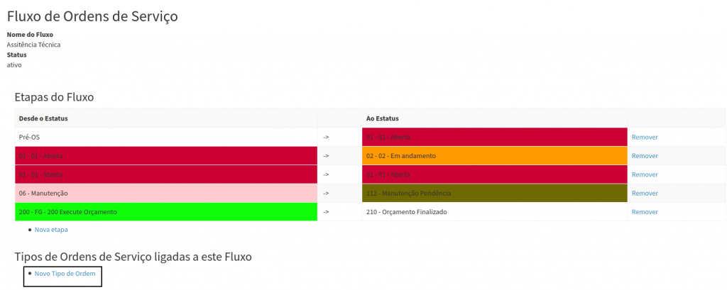 Observação: Para selecionar as etapas do fluxo de ordem de serviço, precisa está cadastrado os status de ordem de serviço: Como cadastrar Status da OS.