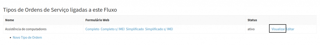 Clicando em visualizar do tipo de ordem de serviços que foi vinculado a este fluxo de ordem de serviço.