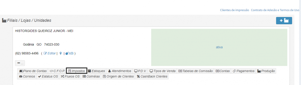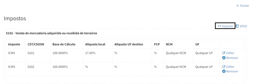 3. Na tela listar Impostos, clique no botão impostos para adicionar.