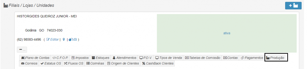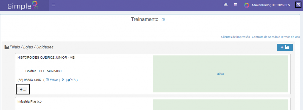 - No canto superior direito na engrenagem, em seguida clique no ícone com sinal de + para abrir o menu de configuração da empresa.