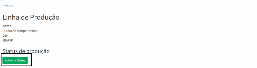 6. Você será redirecionado para tela de Status de Produção, onde serão criados as etapas dos processos da produção.