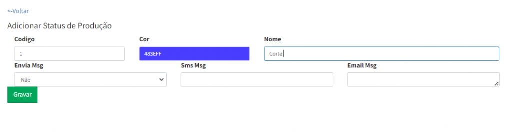 E você pode escolher se quer que o sistema manda E-mail ou SMS, informando em qual etapa do processo esta a produção.