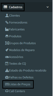 2. Em seguida, clique na opção ‘Listas de Preços’.