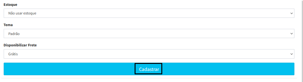 5. Após preencher os campos solicitados, clique em Cadastrar.