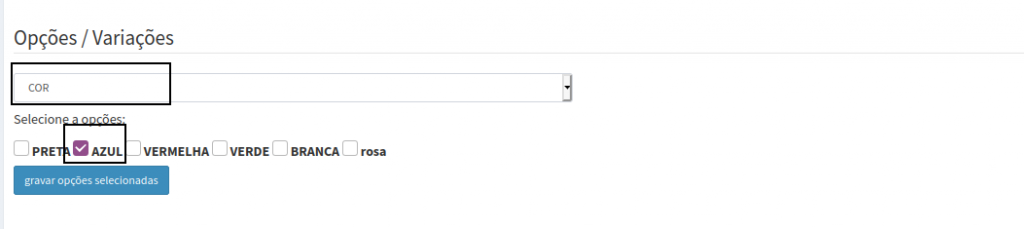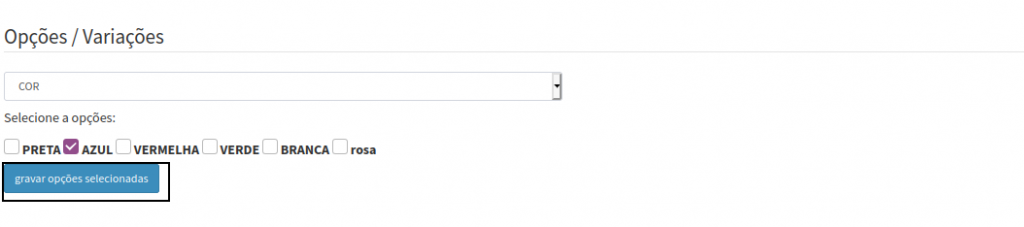 Após selecionar a opções/variações, clique em gravar opções selecionadas.
