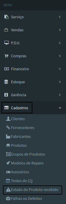 1. No menu principal, localizado no canto esquerdo da tela, acesse o módulo ‘Cadastros’.