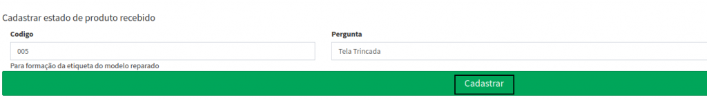 4. Você será direcionado para tela de cadastrar o estado do produto recebido, onde precisa preencher algumas informações.