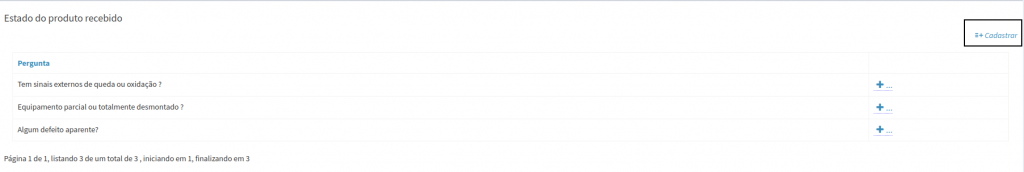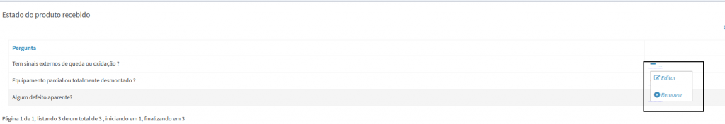 No campo pergunta, informe a pergunta para o estado do aparelho recebido para manutenção.