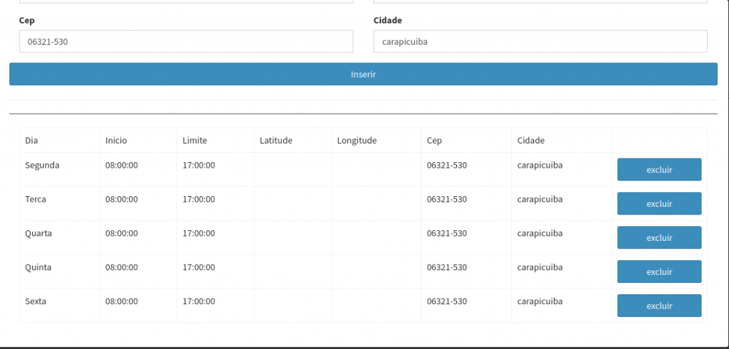 6- Feito o primeiro cadastro, tem que cadastrar os demais dias da semana.