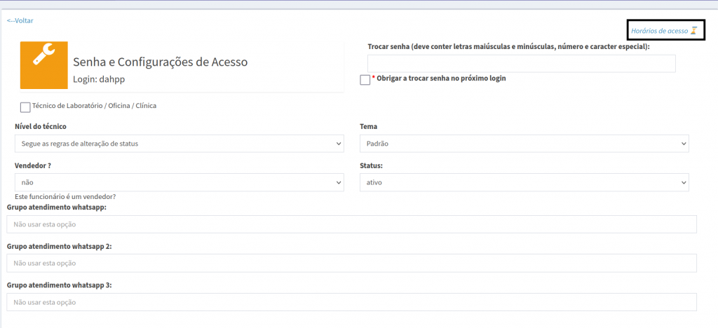 - Como cadastrar permissão de horários de acesso ao sistema.