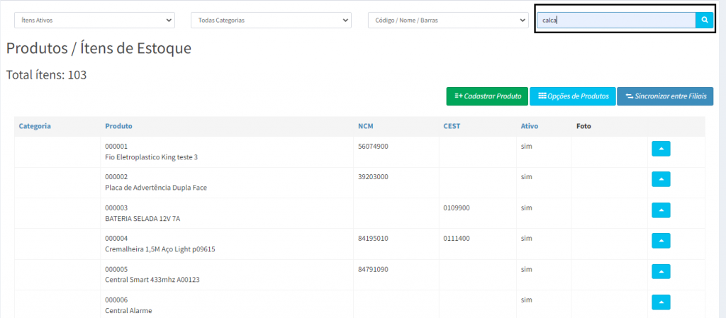 3. O sistema irá te direcionar para tela de Listas de Produtos, onde você vai pesquisar o produto de produção na barra de pesquisa. Caso o produto não esteja cadastrado clique em Cadastrar Produto.