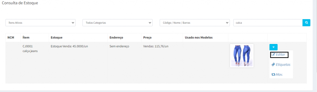 4. Após realizar a pesquisa, no canto direito da tela você vai clicar no botão azul e selecionar a opção Editar.
