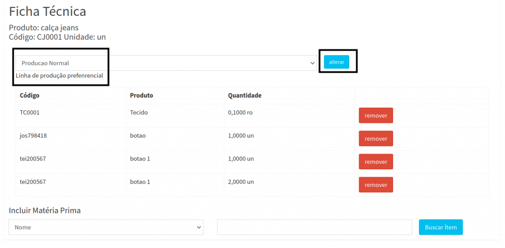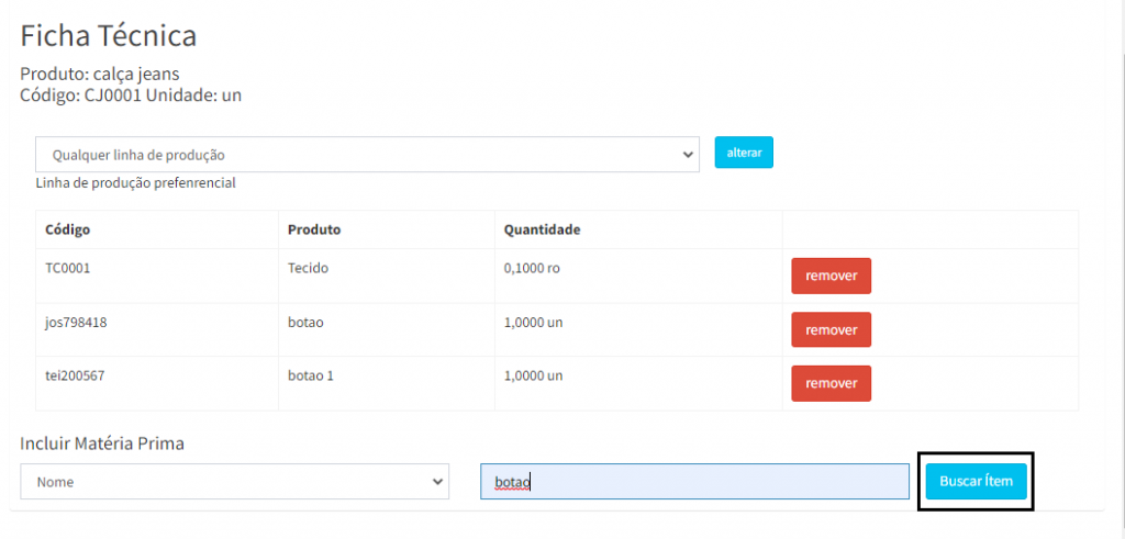 Você vai adicionar todos os item que compõe a ficha técnica para a produção do produto.
