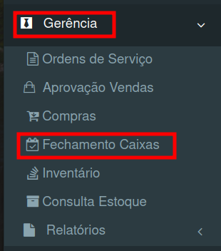 - Em seguida vá em Fechamento de Caixas.