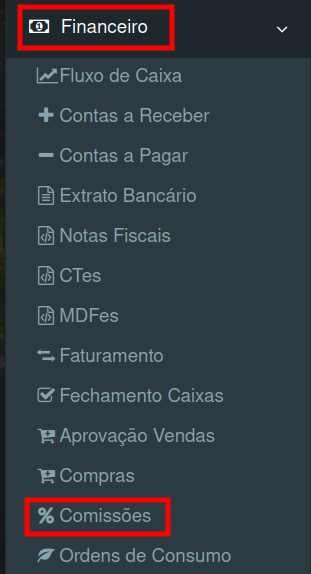 - No menu principal, localizado no canto esquerdo da tela inicial do sistema, acesso o módulo Financeiro.