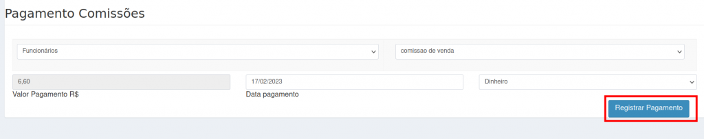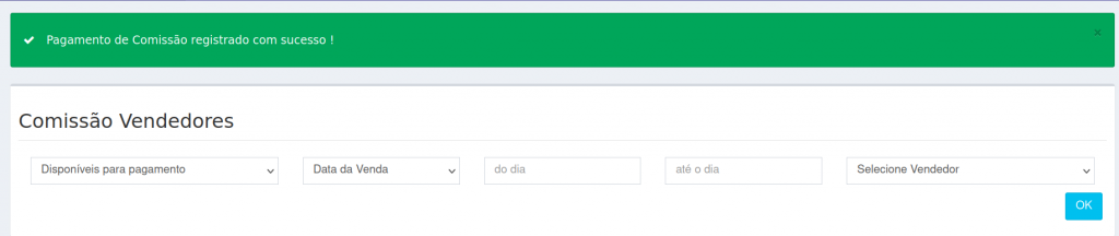 6. O sistema exibe a notificação informando que o ( pagamento de comissão foi registrado com sucesso)
