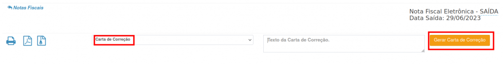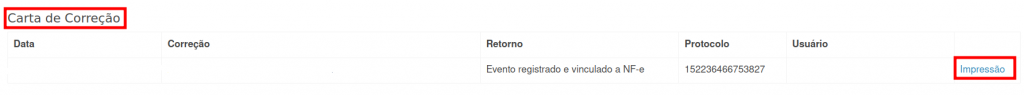 Após gerar a cartão de correção, ela fica disponível para impressão dentro da nota fiscal, rolando a barra de rolagem até o final da pagina da nota fiscal.