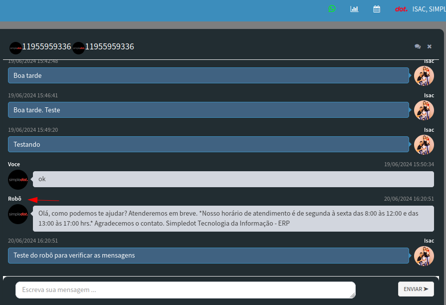 Para realizar a integração do WhatsApp, entre em contato com o nosso departamento financeiro para solicitar o serviço. Informe o seu número para que possamos cadastrá-lo junto à empresa que gerencia as mensagens e definir os valores da integração com a API. Após essas etapas concluídas, podemos criar os scripts de Chat bots.