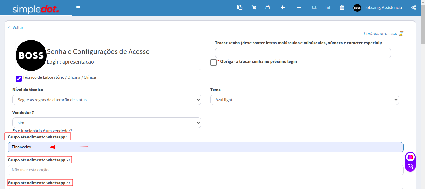 Para criar Grupos de Atendimentos: podendo criar ate 3 grupos.