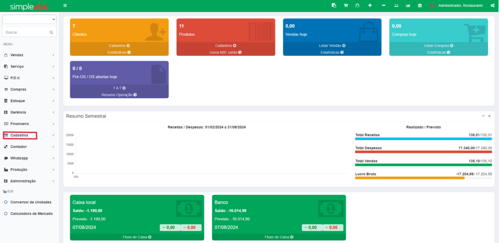 - Acesse o menu, clicando o ícone à esquerda, e clique em cadastros e selecione “Listas de Preços”.