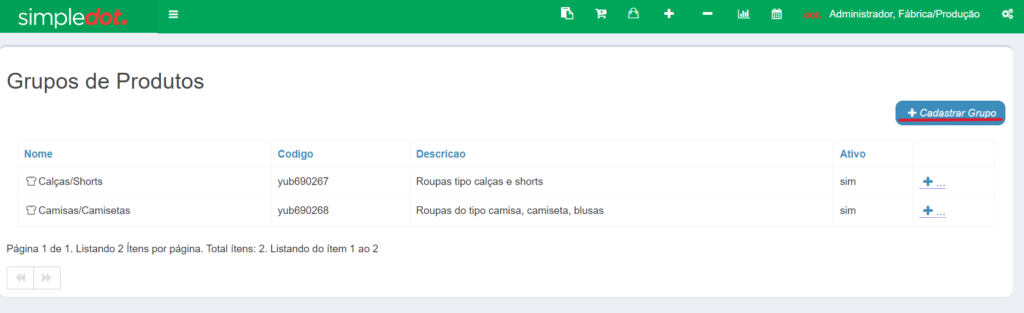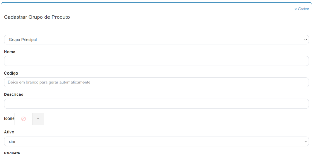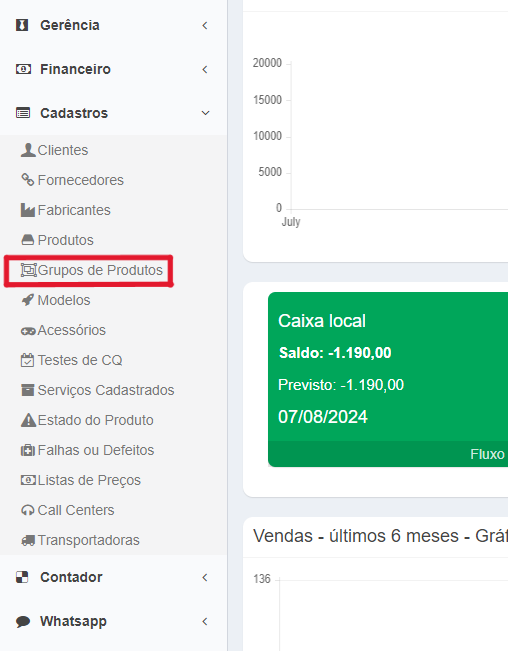 - Em “Cadastro” > “Grupos de Produtos”, cadastre as categorias gerais para a página principal do catálogo.