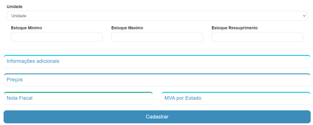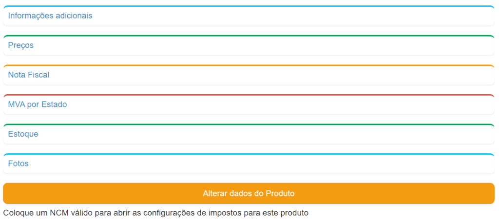 - No final da aba de “Cadastrar/Editar Produto”, clique no botão azul “Cadastrar” ou no botão laranja “Alterar dados do Produto”.