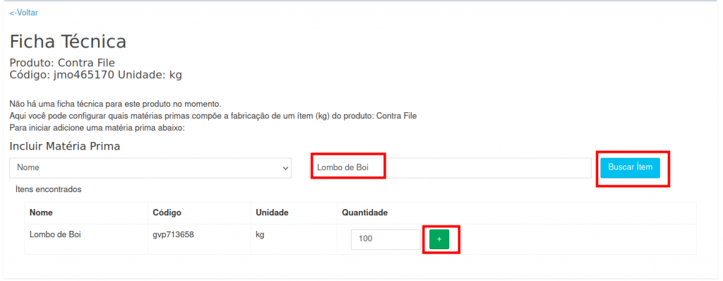 Observação: Repita o processo de criar a ficha técnica de todos os produtos que vão decompor o produto a ser desmembrado.
