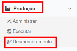 - No Menu Principal, localizado no canto esquerdo da tela, acesse o módulo Produção.