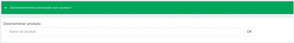 12. Na tela de Desmembrar produto, informe o produto a ser desmembrado e clique em OK