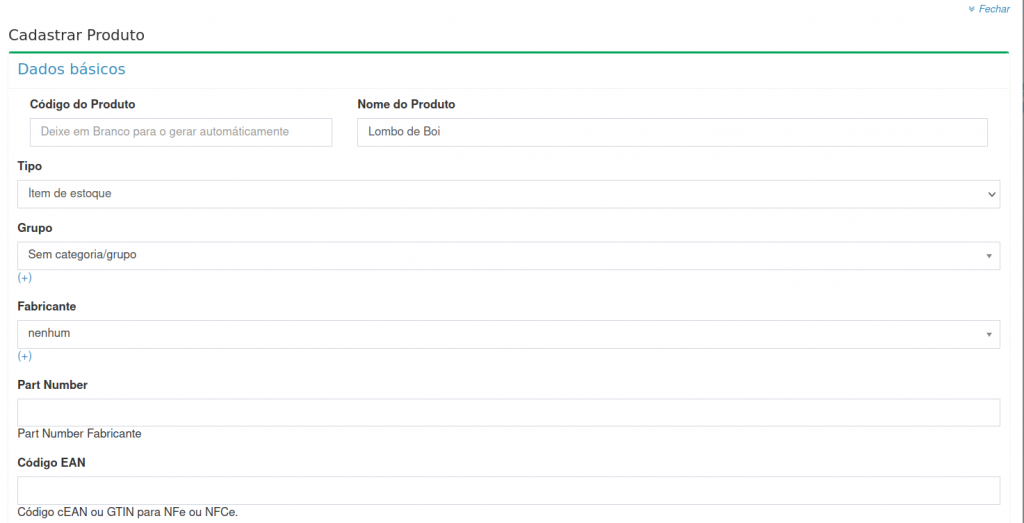 4. Na tela de Cadastrar Produto, preencha os dados do produto.