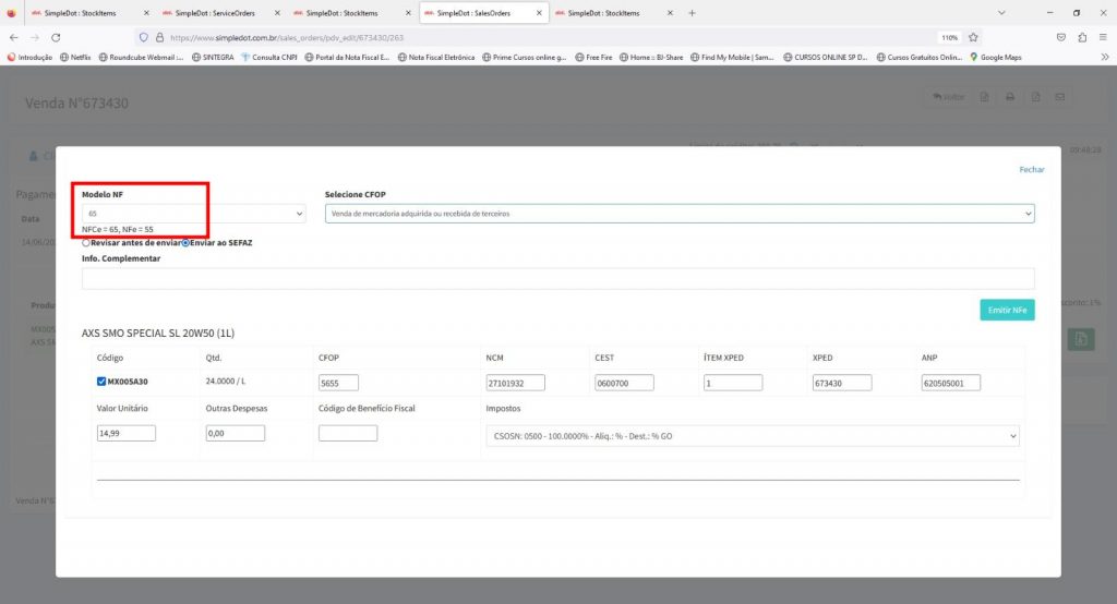 Observação: A opção de selecionar o modelo da nota fiscal só ira mostrar caso tenha os 2 modelos cadastrado em sistema.