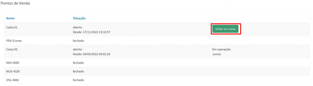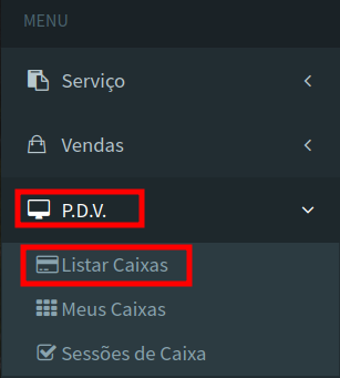 - No menu principal, vá ao campo PDV e clique em Listar Caixas