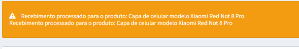 O sistema ira exibir uma caixa de dialogo informando que os produtos foram recebidos.