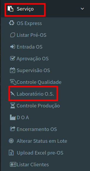 Em seguida vá no módulo Serviços seguido de Laboratório.