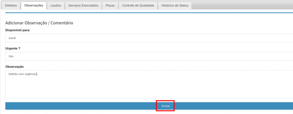 Se deseja inserir observações a O.S;